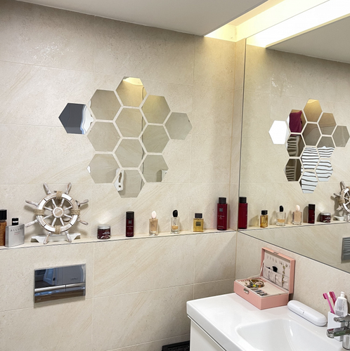 Oglinzi Decorative Stickere Hexagonale - 12 Bucati