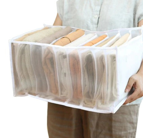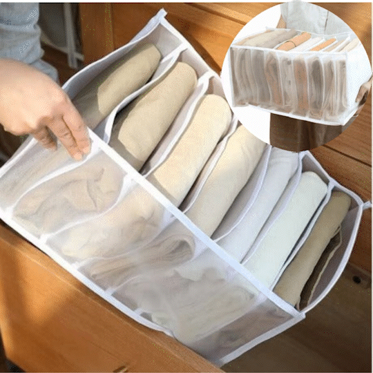 Se pot depozita pantaloni, prosoape, lenjerie de pat, blugi, bluze, pulovere si multe altele. Se poate depozita cu usurinta in sifonier.